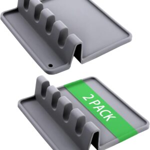 Silicone Spoon Rest with Drip Pad for Stove Top(2PCS), Large Utensil Rest for Multiple Utensils, Heat-Resistant & Dishwasher Safe Kitchen Utensil Holder for Spatula, Ladle, Kitchen Gadgets (Grey)