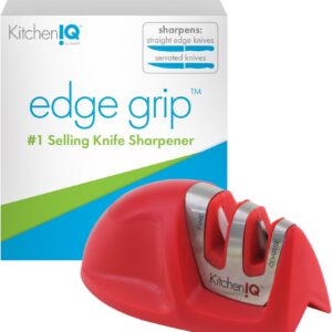 KitchenIQ 50883 – Edge Grip 2-Stage Knife Sharpener – Red – Coarse & Fine Sharpeners – Compact – Stable Non-Slip Base – Soft Grip Rubber Handle – Straight & Serrated Knives