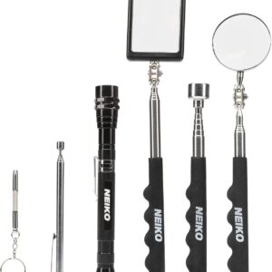 NEIKO 20736A (6) Piece Set, Magnetic Tool & Telescoping Mirror Set, Adjustable Telescoping Magnetic Pickup Tool, Flashlight 15lb Retriever Tool, 360 Swivel, Magnet Mirror, Magnetic Tools for Mechanic